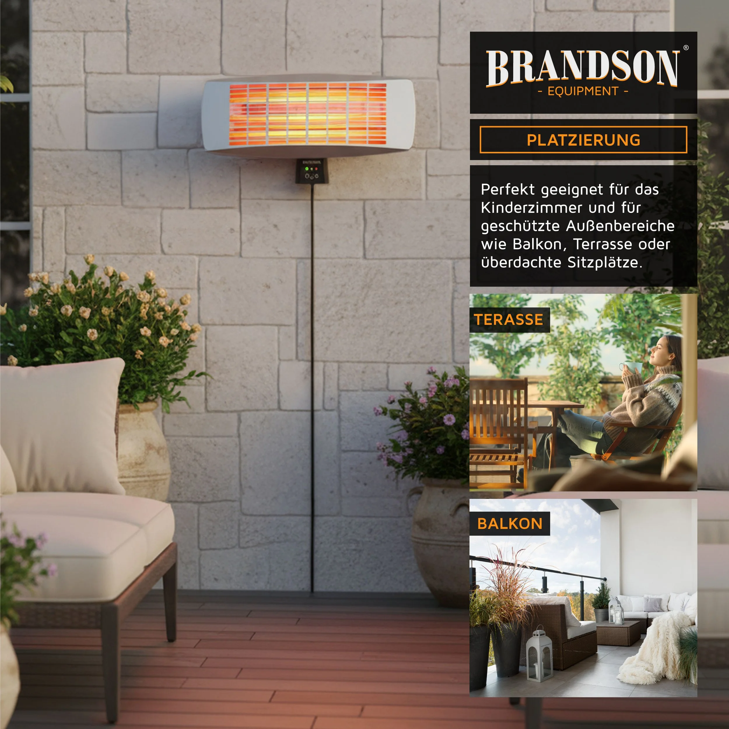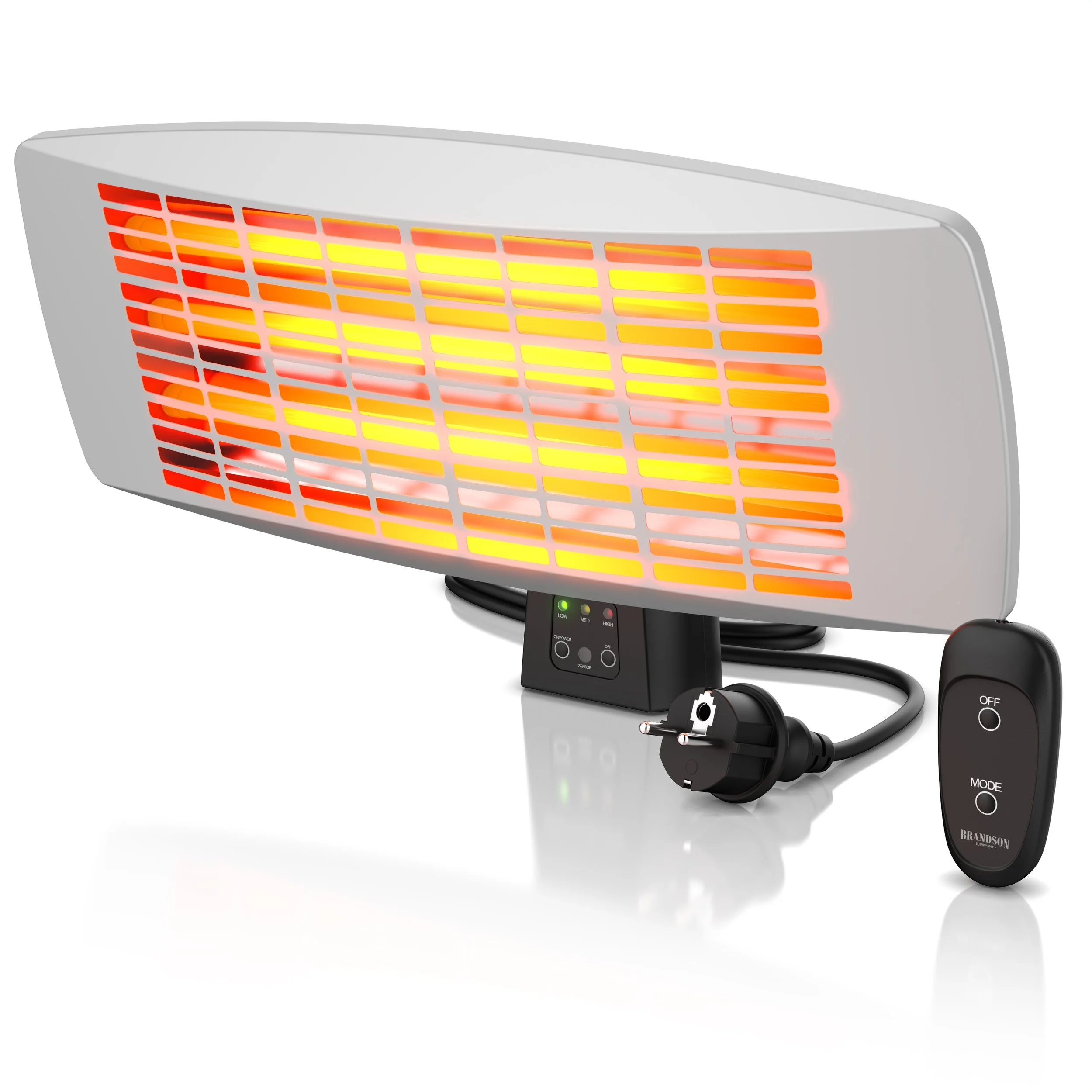 Der leistungsstarke Brandson Heizstrahler verfügt über 3 Schaltstufen, welche Sie über die mitgelieferte Fernbedienung einstellen können. Das Gerät ist als Wandgerät flexibel einsetzbar und spendet Ihnen eine angenehme Wärmequelle. Es sorgt für ein sofortiges Schnell-Aufheizen – und das ganz ohne Vorheizphase. Ein vielfältiger Einsatz in der Wohnung, in der Garage, im Gartenhaus oder auf der geschützten Terrasse steht somit nichts im Wege. Mithilfe des schwenkbaren Gehäuses kann das Heizgerät flexibel und präzise in eine gewünschte Position ausgerichtet werden. Ferner garantieren der robuste Schutzkäfig und der IP24-Schutz einen sicheren Einsatz.