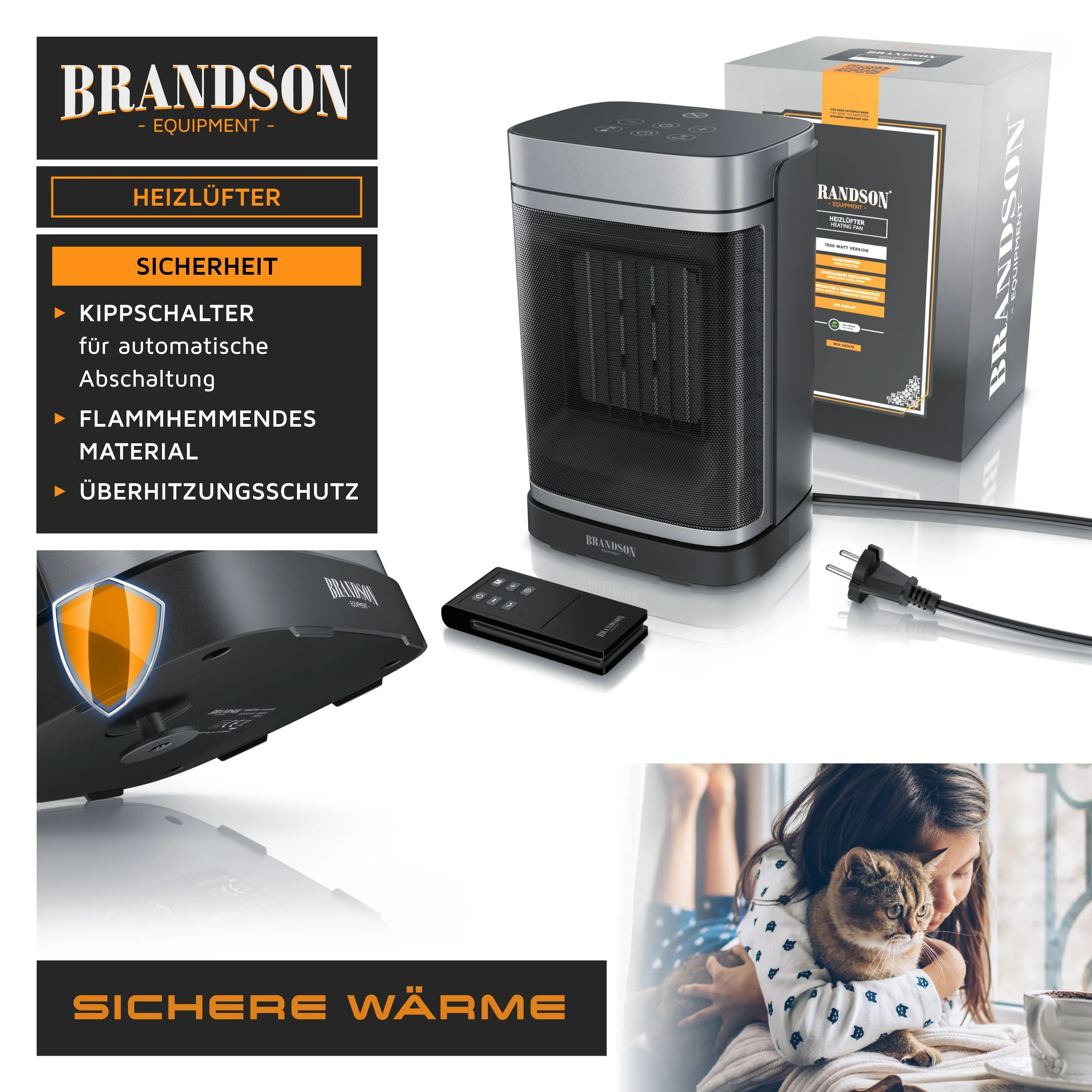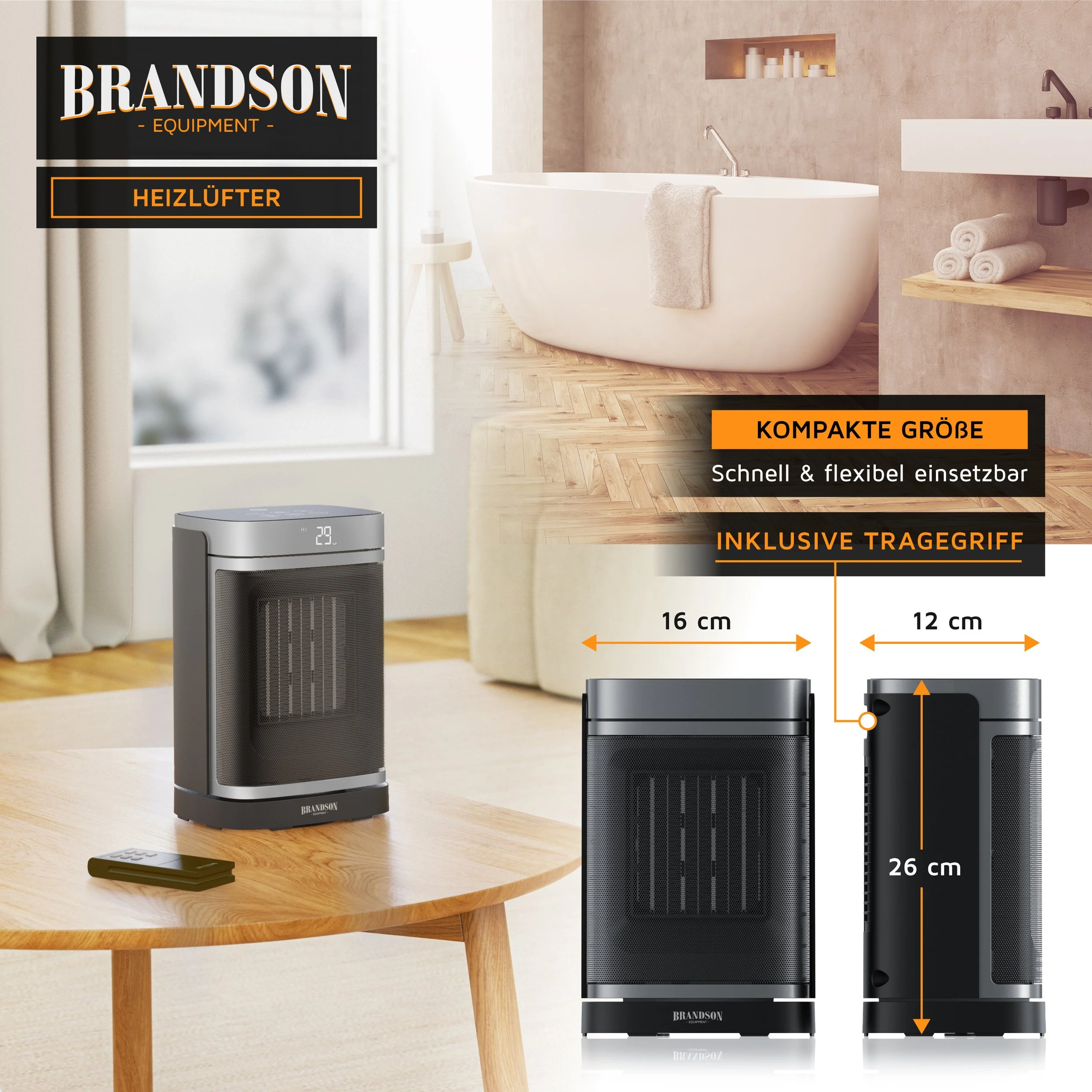 Der elegante Brandson Keramik-Heizlüfter vereint eine hohe Heizleistung mit einem ansprechenden Design und hochwertigen Keramikelementen. Heizen Sie schnell, sicher und energieeffizient bei geringem Stromverbrauch. Mit der Timerfunktion können Sie den Brandson Heizlüfter ganz individuell zwischen 0 und 24 Stunden einstellen. Dank der praktischen Oszillationsfunktion verteilt der Keramik-Heizlüfter in wenigen Minuten die Wärme gleichmäßig.